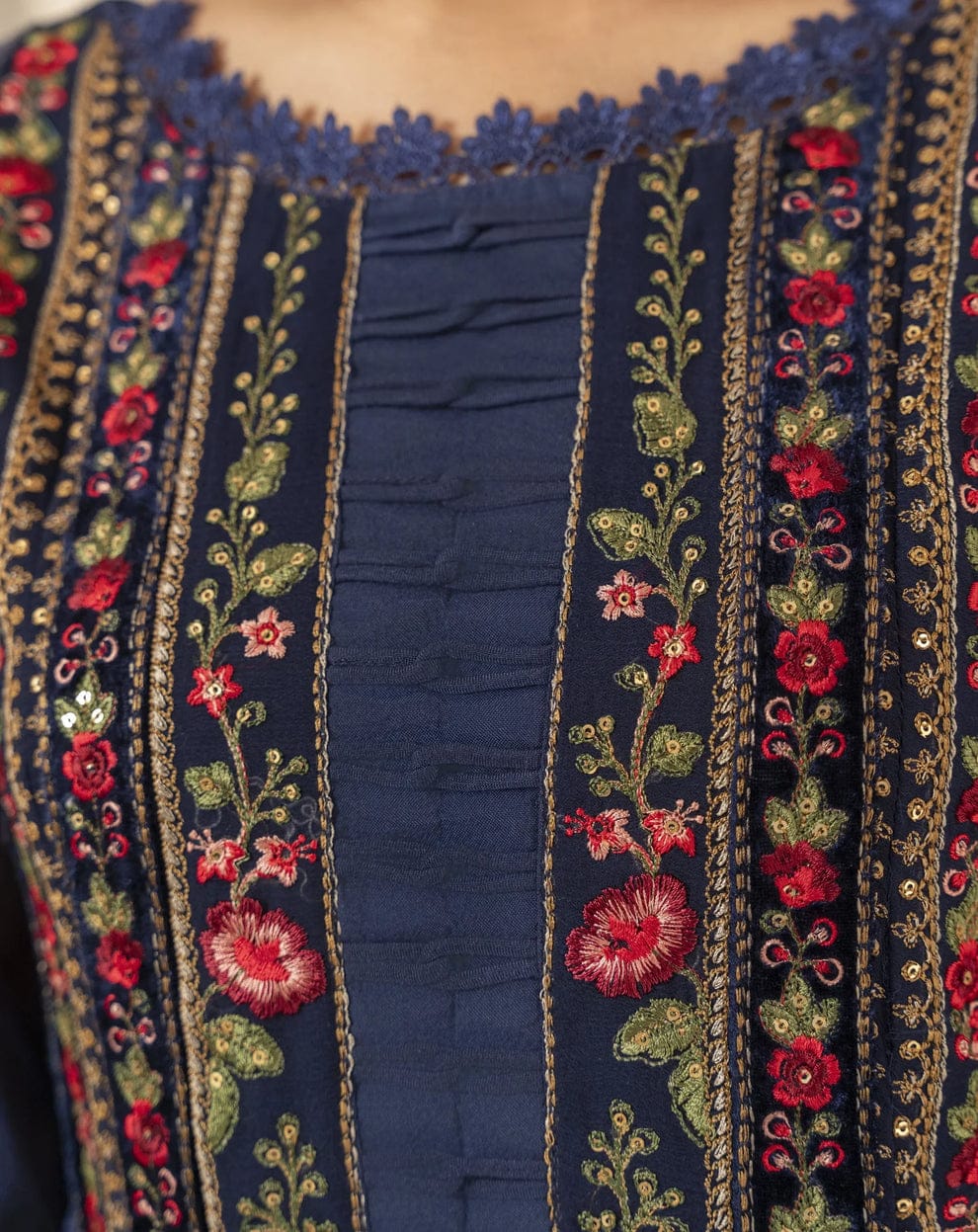 Fabric chiffon front embroidered tila thread sequence and applic work