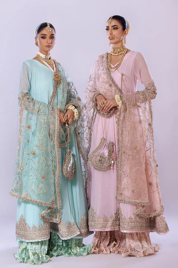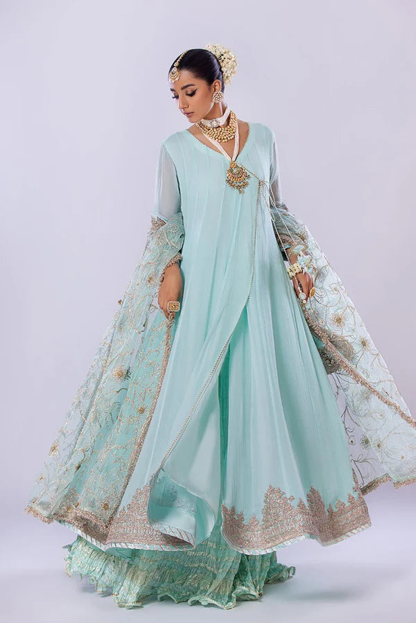 It's the perfect addition to your wardrobe. Complete with Organza sleeves, a Net Dupatta with stunning Gotta work, and a luxurious Indian Crushed Sharara, it's a statement piece you'll adore. Elevate your look with #KhudaBakshbyRashidSidhu today!