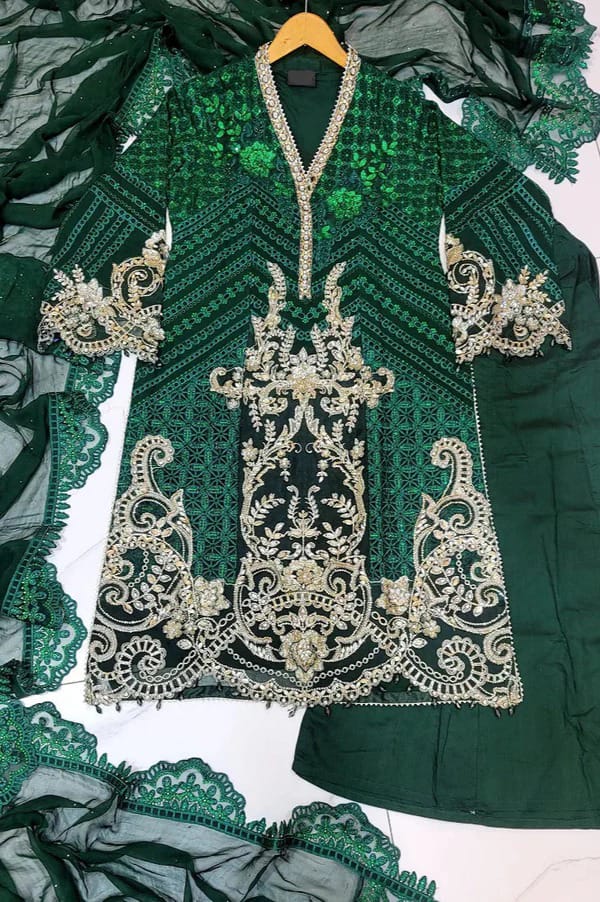 Chiffon shirt embroiderd paired with chiffon embroiderd dupatta and grip plazo..