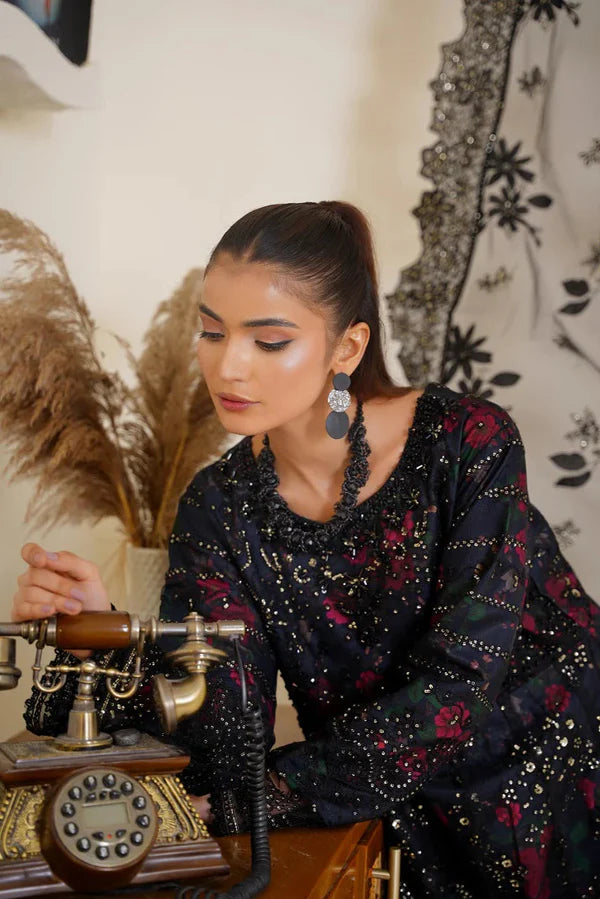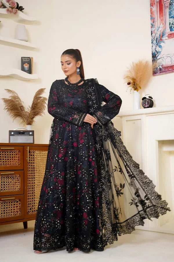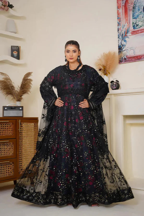Net frock embroiderd with thread,sequence work paired with beautiful net embroiderd dupatta and grip trouser....
