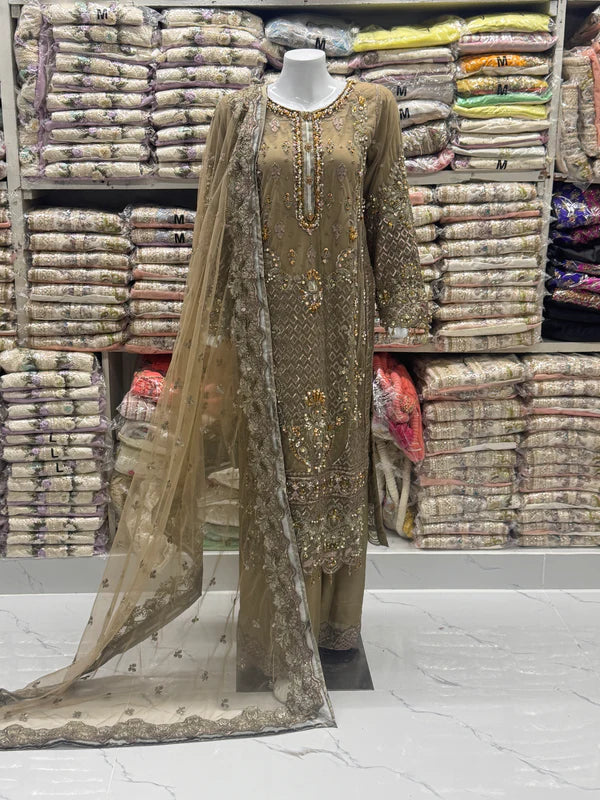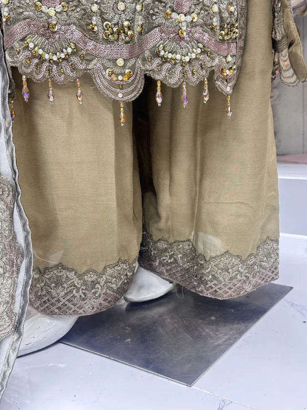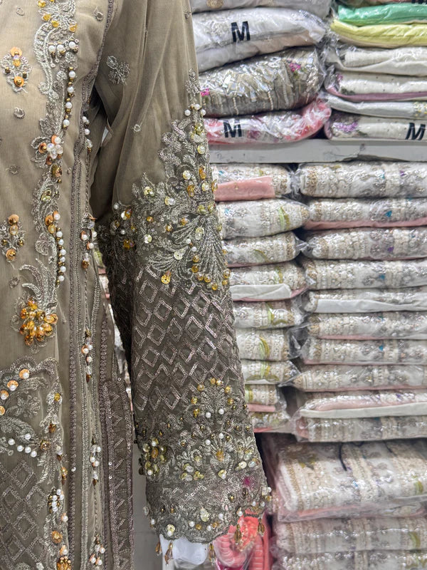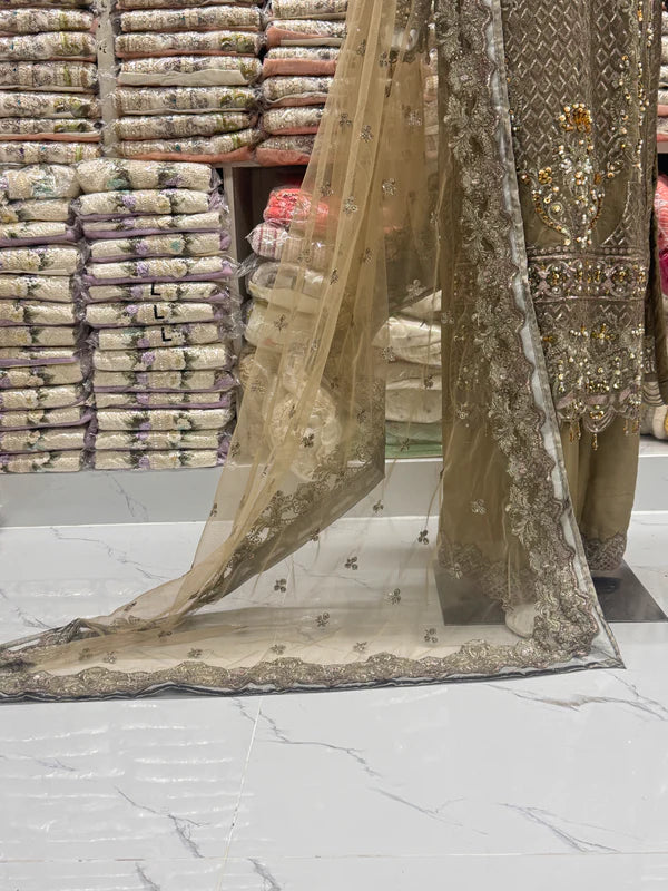 Net fabric shirt embroiderd with tila,thread,sequence work paired with net embroiderd dupatta and grip trouser...