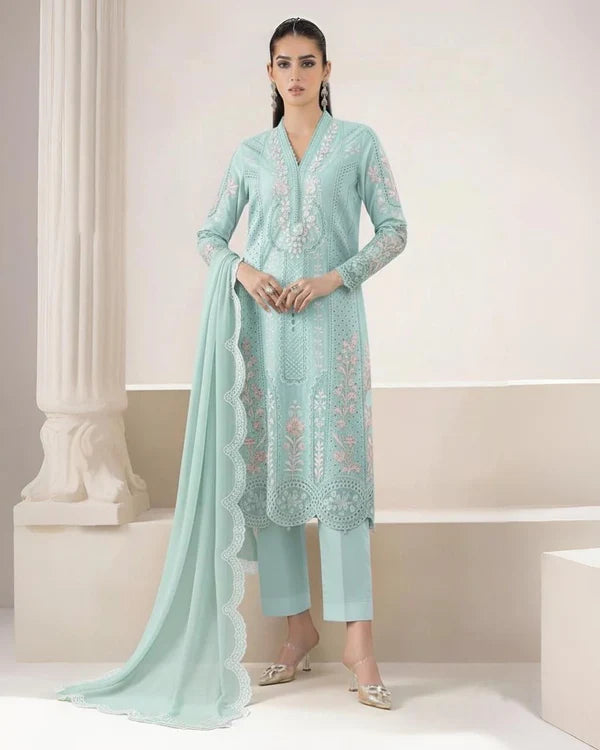 Fabric pure chiffon front embroidered heavy embroidery thread and sequence work