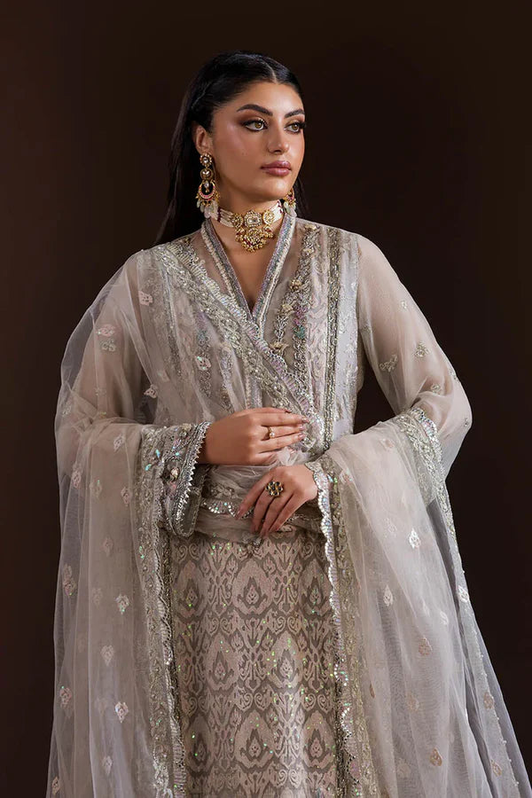 Fabric Pure Crinckle Chiffon embroiderd shirt paired with silk trouser and net embroiderd dupatta